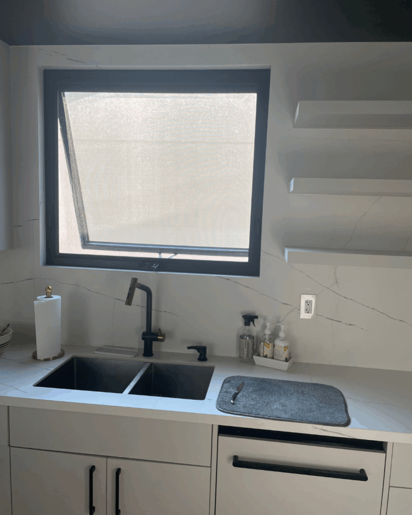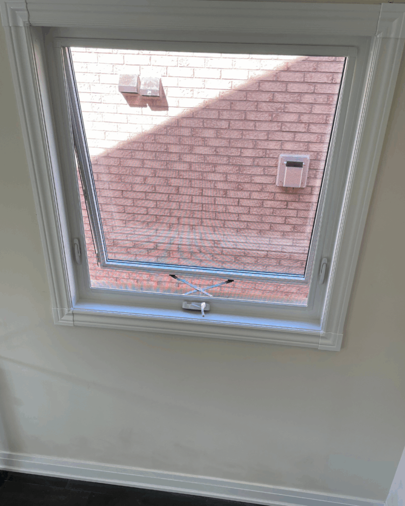 An Awning Window is a type of window that is hinged at the top, allowing the window to open outward from the bottom. This design creates an “awning” effect, where the top of the window remains stationary and the bottom swings outward. It is often used in areas where ventilation is needed while providing protection from rain, as the outward-opening design helps keep rainwater from entering the space. Awning windows are commonly used in basements, bathrooms, or areas where the window is positioned high on a wall. They are typically smaller than other window types and can be operated with a crank or manual mechanism.