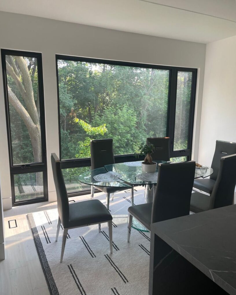 - Natural Light Large expanses of glass let in ample natural light, making interiors feel brighter and more open.
